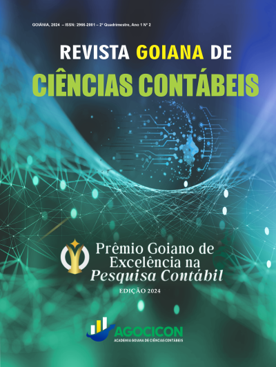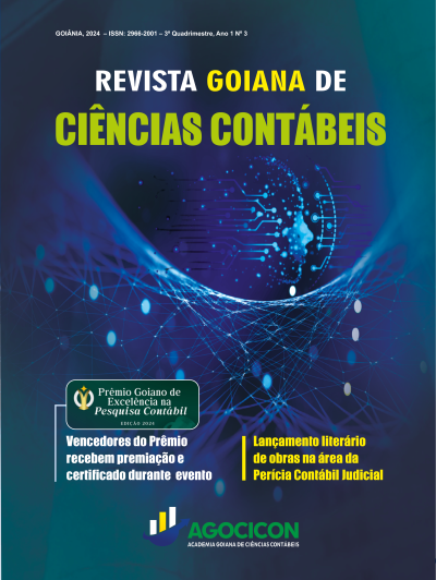 A REVISTA GOIANA DE CIÊNCIAS CONTÁBEIS tem como objeto estabelecer e desenvolver no Estado de Goiás e no Brasil a pesquisa cientifica em torno da Ciência Contábil, através de parcerias com as entidades contábeis, universidades, poder público e privado sobre questões de grande repercussão que impactada as perspectivas de um futuro promissor para os envolvidos com a classe contábil e empresarial, em uma parceria mútua entre a Academia Goiana de Ciências Contábeis (AGOCICON) e o Conselho Regional de Contabilidade de Goiás (CRCGO, com o apoio das demais entidades contábeis e as instituições de ensino superior.